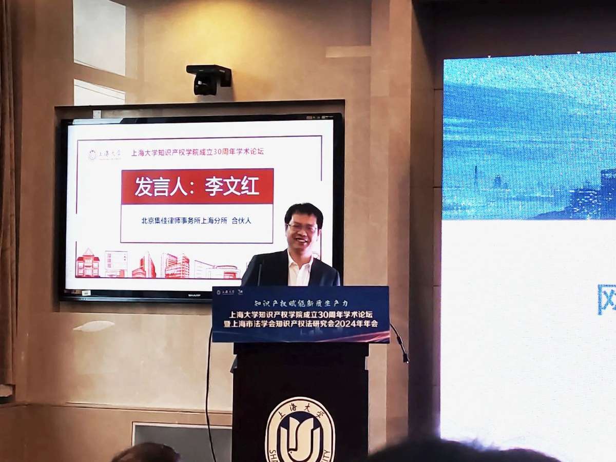 178体育直播上海分所主任、高级知识产权师李文红博士应邀出席大会,并在“释放知识产权价值 赋能新质生产力”分论坛上发表演讲,与来自众多高校的专家学者和业界代表共同就知识产权价值的释放与赋能新质生产力的路径进行了深入探讨。