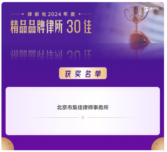 >178体育直播>关于我们>荣誉概览>2025>178体育直播入选律新社2024年度“精品品牌律所30佳” 集佳代理案例获评“律新社2024年度标杆案例”
